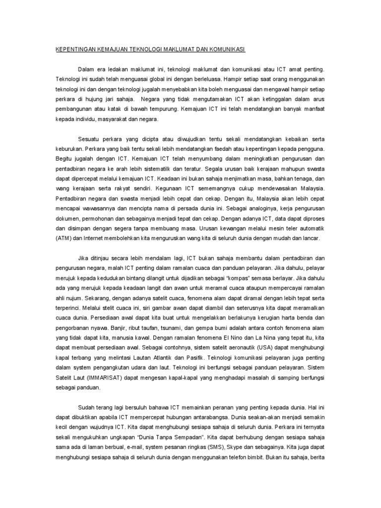 Kepentingan Kemajuan Teknologi Maklumat Dan Komunikasi Pdf